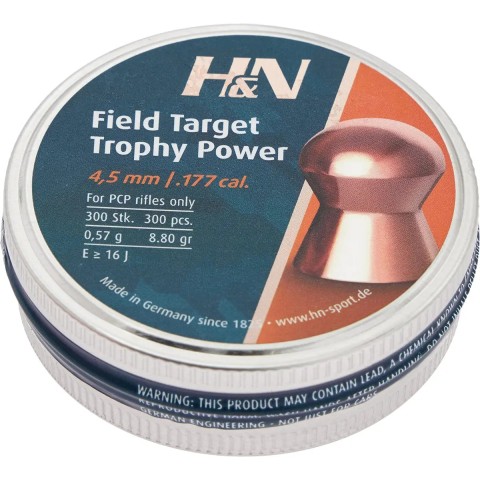 Середні по тяжкості високоточні кулі з настильною траєкторією для стрільби на середні дистанції. Особливий аеродинамічний дизайн забезпечує високу пробивну і проникаючу здатність. Завдяки мідному покриттю кулі, ствол не освинцьовується. Кулі Field Target Trophy Power на 20% твердіші свинцевої кулі. Дуже висока купчастість. Поверхня гладка