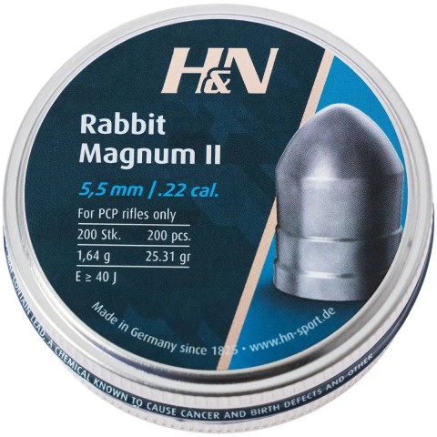 Кулі пневматичні H&N Rabbit Magnum II - важкі мисливські кулі для дальніх дистанцій. Мають унікальний аеродинамічний дизайн у формі торпеди. Мають максимально можливу проникаючу і пробивну здатність. Завдяки особливому сплаву і змащенню, кулі практично не залишають освинцування в стволі.