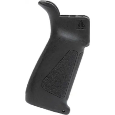 Пістолетне руків'я Leapers UTG для зброї на платформі AR відрізняється поліпшеною ергономікою і рельєфнішим профілем у порівнянні з класичним руків'ям. Руків'я виготовлене з ударостійкого полімеру і має рифлену поверхню, що підвищує надійність утримування навіть в рукавичках чи вологими руками. У корпусі руків'я є відділення для зберігання дрібних предметів