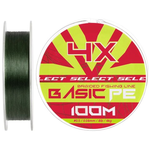 Шнур Select Basic PE Green 100m #0.5/0.08mm 8lb/4kg