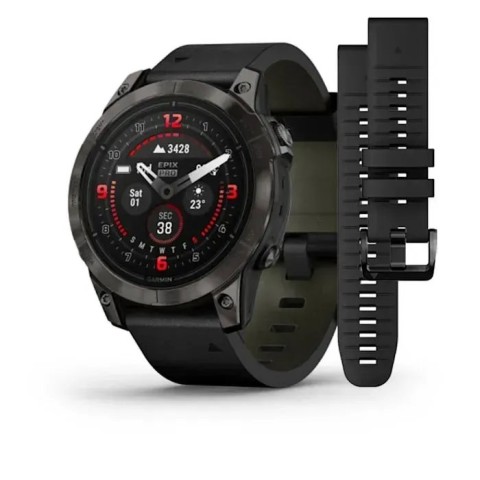 Смарт-годинник Garmin epix Pro Gen 2 Sapphire Edition (47мм) карбоново-сірий титановий DLC з чорним шкіряним ремінцем
