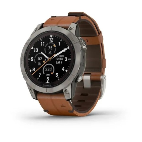 Смарт-годинник Garmin fenix 7 Pro Sapphire Solar Edition титановий з каштановим шкіряним ремінцем