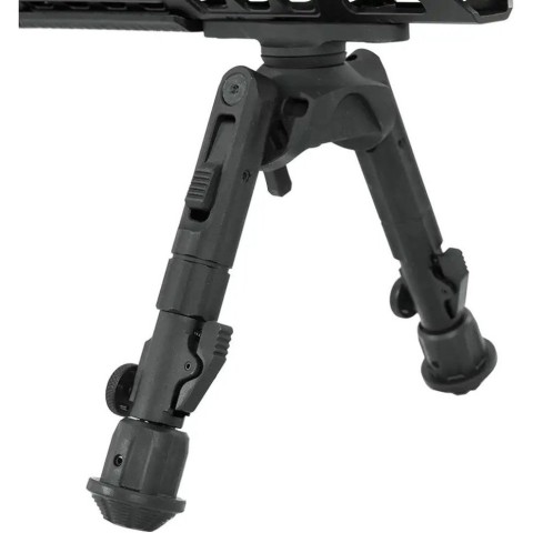 Сошки виготовлені із високоміцного сплаву авіаційного алюмінію та призначені для встановлення на будь-яку зброю з інтерфейсом M-LOK. Сошки UTG легко кріпляться вручну. Панорамування – 360 °. Нахил уперед, назад, ліворуч і праворуч – на 15°. Три фіксовані кути нахилу сошок: 0, 45 та 90 градусів