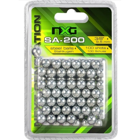 Набір сталевих кульок діаметром 3/8" (9,5 мм), містить 100 штук. Вага набору — 359 г. Ідеально підходить для рогаток та інших пристроїв для метання кульок, забезпечуючи точність і стабільність при стрільбі.