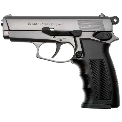 Інформація про пістолет Ekol Aras Compact fumeТурецький стартовий пістолет EKOL ARAS зовні дуже схожий на Browning Hi-Power. Стартовий пістолет – пістолет для холостого пострілу. Використовується при пострілі відповідно холостий патрон. Використовувати його можна при старті спортивних змагань, а може, для привернення уваги, для подачі сигналу, для відлякування зграї собак та ін. Пістолети сигнальні не є вогнепальною зброєю і продаються без дозволу.