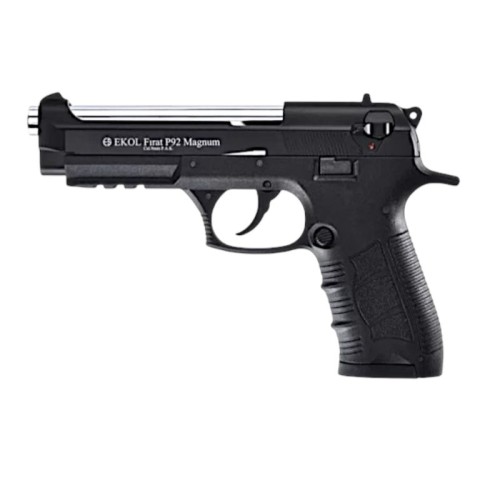 Інформація про пістолет Ekol Firat P92 Magnum black COREОдна з найцікавіших моделей стартової зброї на ринку України – стартовий (шумовий) пістолет Ekol Firat Magnum (Туреччина) від відомого турецького виробника. Ця модель - аналог всім відомої Beretta 92FS. Стріляє холостими патронами 9 мм.Увага! Варіант пістолета з насадкою для відстрілу ракет передбачає виведення порохових газів у ствол із встановленою там заводською перегородкою.