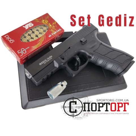 Інформація про пістолет Ekol Gediz SETEkol Gediz - стартовий аналог всім відомого Глок 17. І за формою, і за вагою вони ідентичні, різниця тільки в тому, що турецький варіант не бойовий і стріляє холостими патронами. У комплекті йде пачка холостих патронів.Увага! Варіант пістолета з насадкою для відстрілу ракет передбачає виведення порохових газів у ствол із встановленою там заводською перегородкою.