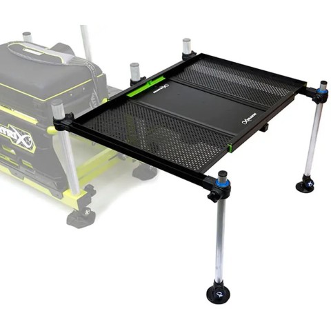 Столик Matrix 3D XL Extendable Side Tray є просунутим елементом обважування фідерної станції. Застосовується для здійснення маніпуляцій зі снастями наживками і насадками під час ловлі мирної риби. Площа робочої поверхні столика може бути змінена завдяки її розсувний конструкції. Виріб оснащений 5-ю 3D-фітингами для кріплення до ніжок з круглим профілем діаметром 25, 30 і 36 мм. В комплект поставляються 2 телескопічних алюмінієвих ноги діаметром 25мм. Столик Matrix 3D XL Extendable Side Tray - зручний і практичний аксесуар для фідерної поплавковою або риболовлі.