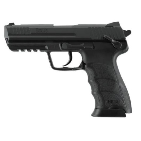 Страйкбольний пістолет Umarex Heckler&Koch HK45 – точна копія найзнаменитішої моделі пістолета Heckler & Koch HK45. Німецька компанія Umarex добилася чудового результату, оскільки репліка вийшла дуже реалістичною і зовнішньо схожою на оригінал. На відміну від нього, репліка працює від 12-ти грамового балона CO2, який вставляється в руків’я. Магазин вміщує 15 кульок BB 6 мм.