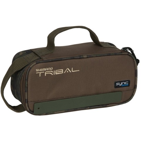 Сумка Shimano Sync Magnetic Security Case належить до серії коропових аксесуарів виробника, що випускаються під торговою маркою Tribal Sync Gear. Вона оснащена магнітною системою кріплення на намет, завдяки чому її можна використовувати як зручну полицю, де знаходитимуться різні пристосування першої необхідності. Наприклад, туди можна покласти пейджер від сигналізаторів клювання, телефон, радіо або гаманець. Сумка виконана з довговічних синтетичних матеріалів і оснащена надійними блискавками, які не підведуть під час користування. Для перенесення у верхній частині та на бічній панелі є плоскі ручки.