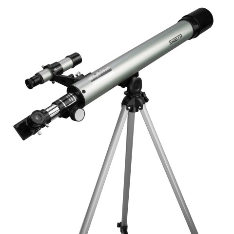 SIGETA Leonis 50/600— класичний телескоп-рефрактор, оптична конструкція якого складається зі скляних лінз. Збільшення телескопа залежить від фокусної відстані використовуваних окулярів. У комплект входять окуляри 6 і 20 мм: розділивши фокусну відстань телескопа (600) на фокусну відстань окуляра, отримуємо збільшення в 100 і 30 разів.Технічні характеристики:Оптична конструкція: рефракторЗбільшення: 30x, 100x (60x, 200x при використанні лінзи Барлоу)Діаметр об'єктива: 50 ммФокусна відстань: 600 ммОкуляр 1: H6 мм (збільшення 100x), Гюйгенса, діаметр 1.25" (31.75 мм)Окуляр 2: H20 мм (збільшення 30x), Гюйгенса, діаметр 1.25" (31.75 мм)Максимально корисне збільшення: 100xСвітлосила: 12Роздільна здатність: 2.76 кут. секПроникна здатність: 10.59 з. вел.Комплектація:Оптична трубаМонтування: азимутальнеШтатив двосекційний алюмінієвий 0.64-1.13 м з лотком для аксесуарівОкуляри — 2 шт.Лінза Барлоу 2xДіагональне дзеркало 90°Оптичний шукач 5x24Інструкція з експлуатаціїГабарити:Розміри упаковки: 86 x 29 x 11 смВага упаковки: 1.9 кгВага телескопа в зібраному вигляді: 1.13 кг