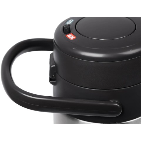 Термос Zojirushi SR-CC оснащений помпою і призначений для домашнього або будь-якого іншого стаціонарного використання. Випускається з об’ємами 2.2 і 3.0 літра, що дозволяє використовувати його в компанії з кількох людей для зберігання гарячих або холодних напоїв. Колба з нержавіючої сталі здатна витримувати високі перепади температури і не схильна до пошкоджень під час перекидання. Широке горлечко діаметром 70 мм розраховане на легкий доступ всередину, наприклад, при опусканні кубиків льоду. Верхня відкидна кришка термоса оснащена клавішею з помпою, що дозволяє наливати напій без відкривання. Наявність спеціального фіксатора, запобіжить випадкове натискання помпи під час транспортування виробу. На дні термоса знаходиться поворотна стійка, завдяки якій термос легко обертається навколо своєї осі, стоячи на столі.