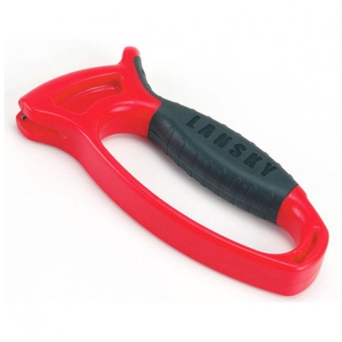 Стругачка для ножів Lansky Deluxe Quick Edge Tungsten Carbide LNLSTCN проста і функціональна. Рукоятка точила за своєю формою нагадує кастет. Незважаючи на уявну непрактичність, рукоятка дуже зручно лежить в руці; крім того, вона захищає руку від пошкоджень при необережному русі. В наверші рукоятки знаходиться V-подібний точильний камінь з карбіду вольфраму. Це дуже міцний матеріал, якого вистачить для тривалого використання. Для того щоб заточити ніж, достатньо буде зробити всього декілька рухів. Кут заточування – 23 градуси.