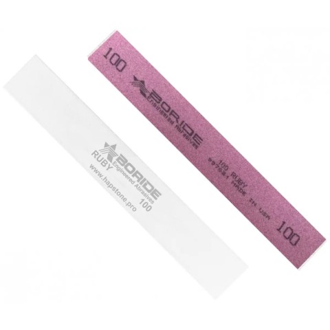 Камені серії Boride Ruby використовуються на обдирному етапі обробки металу. У лінійці зернистості Ruby присутні лише обдирні бруски від 60 до 220 гріт. Абразивне зерно брусків серії Ruby – це легований цирконієм електрокорунд, зв'язка досить м'яка. Це забезпечує каменям цієї серії надзвичайно високу абразивну здатність, що гарантує високу продуктивність знімання матеріалу на будь-яких сталях.