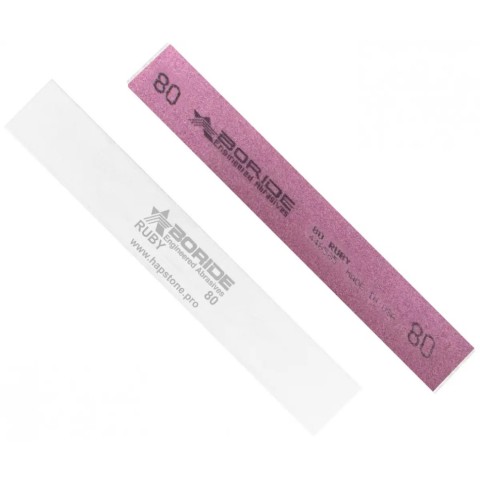 Камені серії Boride Ruby використовуються на обдирному етапі обробки металу. У лінійці зернистості Ruby присутні лише обдирні бруски від 60 до 220 гріт. Абразивне зерно брусків серії Ruby – це легований цирконієм електрокорунд, зв'язка досить м'яка. Це забезпечує каменям цієї серії надзвичайно високу абразивну здатність, що гарантує високу продуктивність знімання матеріалу на будь-яких сталях.
