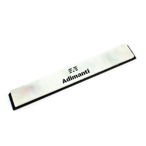 Камінь для заточування Аdimanti 8000 зроблений з натурального природного матеріалу, що вже говорить про його високу якість. Він щільний і гладкий, добре шліфує попередньо заточені інструменти. Точильні камені з великою гритностью використовуються як для роботи з ножами, так і для інших інструментів, ріжуча кромка яких вимагає бритвеної заточування. Завдяки тому, що лезо стає після шліфування максимально гладким, заточка тримається довше, ніж без цієї процедури. Аdimanti 8000 підходить для роботи зі сталлю високої твердості. Використовувати цей точильний камінь можна як в комплекті з ручними точильными верстатами, так і самостійно. Розміри каменю становлять 22х157 мм. Він розміщений на тонкому підставі з чорного пластику.