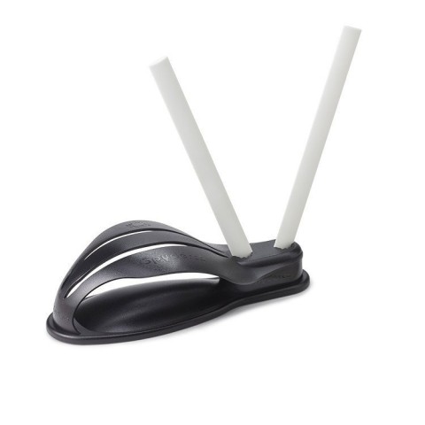 Spyderco Gauntlet – це проста у використанні точильная система, яка дозволить навіть починаючому користувачеві заточити ніж всього за кілька хвилин без електрики, масла, води або складних затискачів і пристосувань. Система складається з полімерної бази з протиковзкою основою і інтегрованим захистом для рук. Є два отвори для утримання абразивних стрижнів під ідеальним кутом 40 градусів (20 градусів на кожну сторону). Ці отвори також дозволяють повертати стрижні для використання «свіжої» абразивної поверхні або для заточування серрейторных ножів.