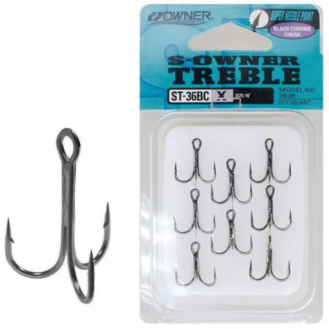 Трійник Owner ST-36 випускається у кількох варіантах кольору покриття. Застосовується для оснащення блешень або воблерів, виготовлення монтажів для силіконових приманок, а також для лову хижої риби на живця. Він має класичний круглий загин та цівку середньої довжини, що надає моделям суттєвої універсальності у застосуванні. Пряме жало з голчастим заточуванням Super Needle Point має неймовірну гостроту і зберігає її навіть за тривалого використання.