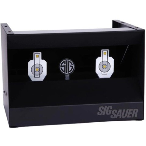 Тир SIG AIRGUN DUAL SHOOTING GALLERY являє собою сталевий кулеуловлювач з двома мішенями, що падають, і центральною мішенню Sig з функцією скидання. У комплекті п'ять наборів змінних наклейок-мішеней.