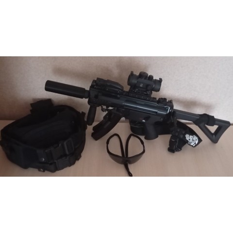 mp5 у гарному технічному стані, привід із тюнінгом. Встановлена тактична цівка з ABS-пластику та аксесуари: ручка переносу вогню, ліхтарик і пристріляний коліматор. У комплекті стяжка з двома магазинами, макет глушника. Також додаються стокові запчастини: ручка переносу вогню, планка Picatinny з кріпленнями, змінний піджимний тильник під балон (для використання без приклада), два кріплення для прицілу, дві банки кульок BB 4,5 мм, запасний клапан і додатковий магазин без пружини. У наявності документи: техпаспорт і накладна на покупку.Увага! цей пістолет кулемет продається за передоплатою 800 грн