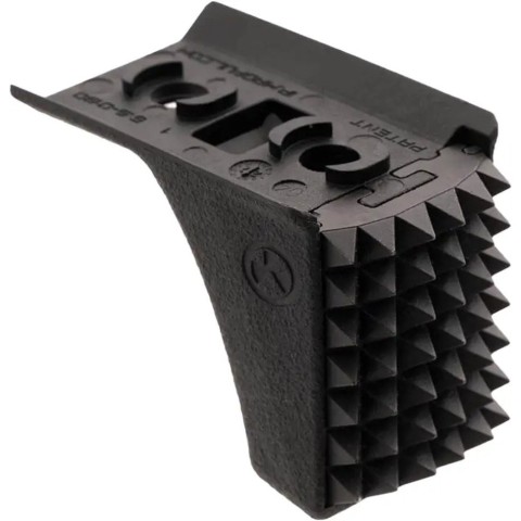 Упор Barricade Stop має міцний полімерний корпус, в який вставлена пластина із загартованої азотованої сталі. Сталева пластина злегка вигнута і має зубчасту текстуру для оптимального контакту на нерівних поверхнях, що дає можливість повертати зброю, зберігаючи контакт і контроль.