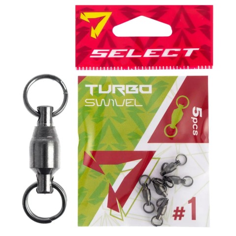 Вертлюжок Select Turbo Swivel – потужні моделі для оснасток підвищеної міцності. Запобігає перекручуванню волосіні та інших елементів оснастки навколо поздовжньої осі. Його застосування особливо актуально при використанні несиметричних деталей монтажу або приманок, які мають власний крутний момент, при русі у воді, за рахунок чого можуть активно обертатися під дією потоку, що набігає. Компенсація скручування за допомогою вертлюга зменшує ймовірність заплутування та пошкодження волосіні. Вертлюжок Select Turbo Swivel пропонується у двох розмірах, виконаний з високою якістю із міцного металу, а порівняно невисока вартість успішно конкурує із подібними виробами від інших виробників.