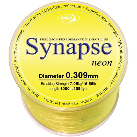 Волосінь Katran Synapse Neon - це найкращий вибір жилки для членів понад 10 національних команд на чемпіонаті світу з карпфішингу з 2014 року. У Болгарії та Хорватії Synapse Neon вважається однією з найкращих лісок для далекого закидання з дальністю польоту до 200 метрів. У 2016 виробник розширив діапазон діаметрів та розмоток у модельному ряді. Гладка флуоресцентна волосінь з мононитки не тільки набагато менш помітна у воді, ніж будь-яка інша кольорова волосінь, Neon також відображає штучне світло, що робить цю волосінь безцінною під час риболовлі вдень і добре помітною вночі.