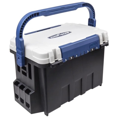 Рибальські скрині серії Bucket Mouth від японського виробника Meiho – гарний вибір для рибалок, які люблять тримати снасті та приманки в порядку. Завдяки інноваційному матеріалу - сополімеру, вдалося зменшити масу ящика і при цьому зберегти удароміцність та стійкість до подряпин. Якщо рибалка вирішить перенести коробку і при цьому не закриє клямку, то продумана система при підйомі ручки заблокує її кришку автоматично і не дозволить нічому випасти. Усередині є перегородки, які можна встановити на власний розсуд, що дозволить вмістити не тільки коробки з дрібними аксесуарами, а й котушку. З боків розташовані кріплення, до яких можна докупити спеціальні підставки під вудилища або просто тримач для пляшки з водою.