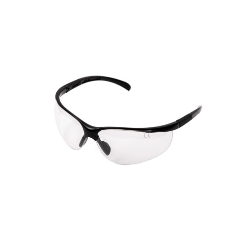 Захисні окуляри "Combat Zone SG1" в чорній оправі, з прозорими лінзами і захистом від ультра-фіолетового випромінювання.