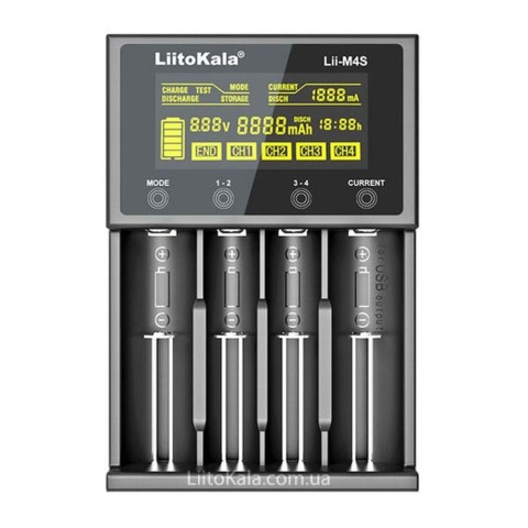 LiitoKala Lii-M4S - універсальний інтелектуальний зарядний пристрій на 4 незалежні канали з контрастним LED дисплеєм і з функцією Power Bank. За функціоналом і виконанням зарядний пристрій Liitokala Lii-M4S схожий на модель Lii-500S, але модель Lii-MS4 має живлення від USB-C і за рахунок цього більш доступну ціну в порівнянні з Lii-500S. Зарядний пристрій Liitokala Lii-M4S може працювати з різними типами та форматами циліндричних акумуляторів. Liitokala Lii-M4S - багатофункціональний зарядний пристрій, він може заряджати, розряджати, тестувати акумулятори, а також готувати акумулятори до зберігання (функція STORAGE). У Lii-M4S є функція Павер банк, за допомогою якої Ви зможете заряджати мобільні телефони, смартфони, планшети, електронні книги та ін.