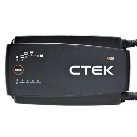 CTEK M25 - ідеальний 25-амперний зарядний пристрій для власників човнів з великими акумуляторами. Він має цілий ряд функцій, включаючи режим Recond для відновлення глибоко розряджених WET і ​​Ca / Ca акумуляторів і датчик температури, який оптимізує заряд, якщо температура відхиляється від + 25˚C. Він також має режим Lithium для літієвих акумуляторів (LiFePO4, Li - Fe, Li - iron, LFP) 12-вольтів. M25 оснащений довгим 4-метровим кабелем для легкої установки на ваш човен.