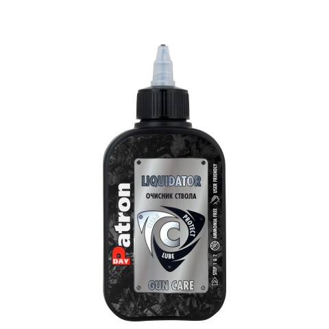 Ліквідатор - Потужний, високопродуктивний засіб, миттєво вступає в реакцію і видаляє всі види забруднень та відкладень після пострілу: вуглецеві, порохові, мідні, свинцеві та інші залишки, у всіх видах нарізної та гладкоствольної зброї малого та великого калібру. Ефективно нейтралізує всі корозійні залишки, короткостроково запобігаючи появі корозії. Безпечний для використання в стволах з нержавіючої сталі та інших типів. Не вступає в реакцію з металами з яких виготовлена зброя. Унікальна формула, яка не горить, без аміаку та запаху, нетоксична та біорозкладна.