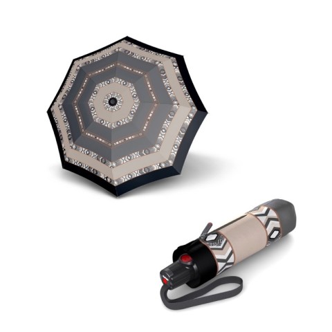 Ручка парасольки-зручна для використання. Випущена в чорно – сірому кольорі з впізнаваним символом компанії Knirps-червона точка. Також ручка парасольки виконана зі спеціальною петлею. За рахунок якої Ви можете носити парасольку в руці, на зап'ясті або вішати на гачок.